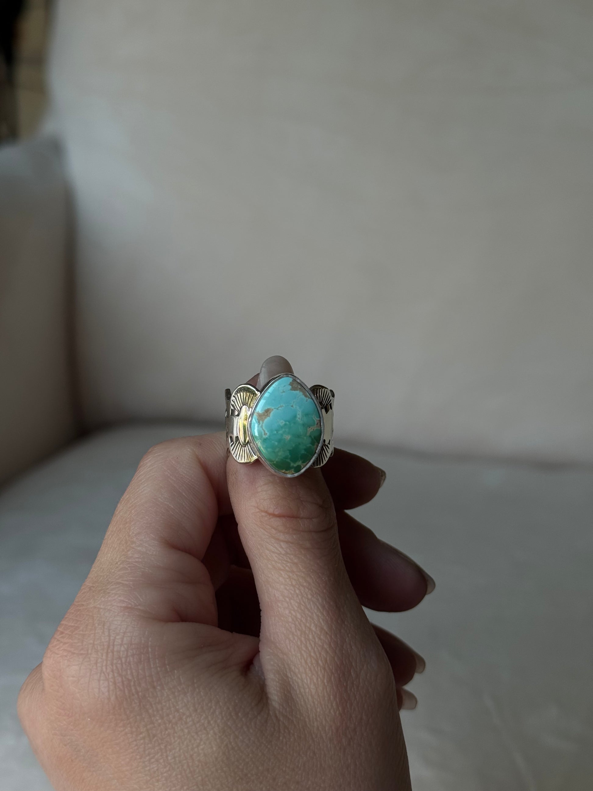 High Grade Royston Turquoise Wide Band Ring - size 9.25